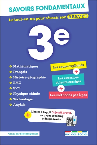 Un tout-en-un avec des explications de cours illustrées, des exercices pas à pas, des quiz pour s'évaluer. - Toutes les matières : Mathématiques, Français, Histoire-géographie, EMC, SVT, Physique-chimie, Technologie et Anglais - Tous les cours de l'année sont expliqués et illustrés de photographies, cartes et schémas pour bien comprendre et bien retenir. - Les cours sont accompagnés de points de méthode, de rappels, de conseils et d'astuces.