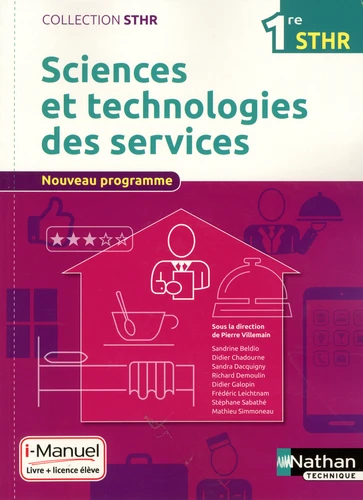 Un ouvrage qui couvre intégralement le programme correspondant de 1re STS (Sciences et Technologies des services) du Bac STHR. Il est proposé au choix en livre papier + licence numérique i-Manuel ou en 100% numérique i-Manuel. En version imprimée, cet ouvrage propose en complément une licence numérique i-Manuel 2. 0, la solution pour mettre les élèves en activité sur ordinateur ou sur tablette. En cas de prescription à l'ensemble de la classe (20 élèves minimum), l'activation de la licence élève est laissée au libre choix de l'enseignant.