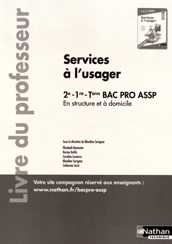 Le livre du professeur de Services à l'usager 2e/1re/Tle Bac Pro ASSP, offert gratuitement aux enseignants prescripteurs, options "A domicile" et "En structure", fournit tous les corrigés des activités.