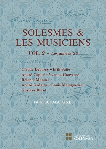 Ce volume, qui fait suite à celui consacré à la Schola cantorum, regarde en grande partie les musiciens qui sont venus à Solesmes autour des années 20. Il y sera d'abord question de Claude Debussy et d'Erik Satie, considérés dans leur rapport au chant grégorien et leurs hypothétiques passages à l'abbaye. Trois musiciens d'envergure sont décrits ensuite. André Caplet, d'abord, cet ami intime de Debussy qui dirigera l'orchestre de l'Opéra de Boston, notamment pour la première de Pelléas et Mélisande, en 1912.