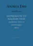 Suprématie et malédiction (Journal 1973) est la première traduction en langue française d'un livre d'Andrea Emo (1901-1983). L'ouvrage original est paru en 1998 en italien sous le titre : Supremazia e maledizione. Diario filosofico 1973, a cura di Massimo Donà e Romano Gasparotti, Milan, Raffaello Cortina Editore. Andrea Emo n'a jamais publié ni formé le projet d'aucun livre. Son oeuvre entière est constituée de près de 38 000 pages de cahiers rédigés de 1918 à sa mort.