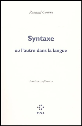 " Comme la littérature et le style, mais à un degré plus observable, mieux quotidien, plus commodément autopsiable, si vous me pardonnez l'expression, la syntaxe est une inadhérence, une inadhésion, une inappartenance, une solution de continuité, un défaut de coïncidence, surtout, entre l'homme et sa parole, entre le moi et son expression, entre l'être et l'infinité de ses possibles. Quand je dis qu'elle est l'autre dans la langue, je veux dire aussi qu'elle est, pour commencer, sinon l'autre dans le moi du moins sa condition, à défaut d'être sa garantie : la garantie qu'il y a du jeu, de la place, de la distance, un faste, un lieu d'accueil pour l'avenir. " Sont réunis dans ce recueil les textes de trois conférences prononcées par Renaud Camus, l'une à la Sorbonne le 25 novembre 2003, la deuxième à la
