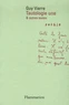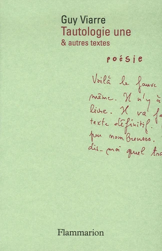 Guy Viarre avait remis le manuscrit final de Tautologie une à Yves di Manno, quelques semaines avant sa mort: le texte était destiné à l'ouvrage collectif Venant d'où ? 4 poètes, qui devait paraître peu après dans la collection Poésie/Flammarion. Le volume que nous proposons aujourd'hui reprend, en ouverture, ces pages qui comptent parmi les plus intenses que l'auteur nous a laissées. On y trouvera d'autre part deux suites inédites : Le museau mis et Devant le temps, ainsi qu'une série d'ébauches, composées au cours de l'année 2001 : le tout constituant l'ultime chantier - et l'état le plus avancé - de la poésie de Guy Viarre, telle qu'il nous a contraints à la considérer : dévastée, foudroyante, achevée.