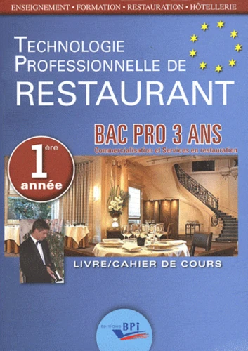 Technologie professionnelle de restaurant Bac pro 1re année. Livre/cahier de cours