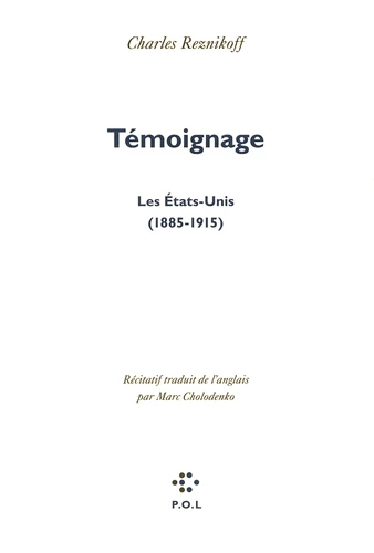 Dans un entretien publié dans Contemporary Literature Charles Reznikoff, pour décrire sa démarche, citait un poète chinois du XIe siècle qui disait : «La poésie présente l'objet afin de susciter la sensation. Elle doit être très précise sur l'objet et réticente sur l'émotion». Sans doute n'est-il pas inutile, aujourd'hui, de présenter avec Témoignage, Les États-Unis (1885-1915) une des illustrations les plus complètes et convaincantes de ce programme.