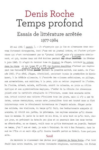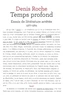 Peu à peu se dessine en contrepoint la rassurante complicité amoureuse d'un couple, une complicité intellectuelle, artistique, sexuelle. Temps profond, journal des années de grande activité créatrice de Denis Roche , prend place dans son oeuvre comme la dernière pièce du puzzle, celle qui lui donne, par sa simplicité trompeuse, toute sa cohérence et qui nous invite à suivre ce qu'il appelle "le délicieux cheminement des géomètres invisibles" .