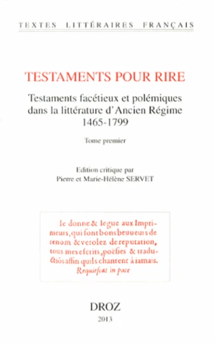 Testaments pour rire. Testaments facétieux et polémiques dans la littérature d'Ancien Régime (1465-1799) 2 volumes