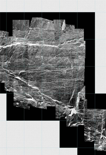 Grégoire Eloy a cartographié la faille de Balmuccia, en Italie du nord, longue d´une trentaine de mètre, en parcelles d´un mètre carré, correspondant à autant de photographies. Ce relevé, mis en page sous la forme d´un livre d´artiste spiralé, est aussi un outil scientifique : en détachant les pages à l´aide des traits de coupes et en les associant selon leurs coordonnées, il est possible de la reconstituer à l´échelle 1 :10 dans son intégralité.