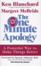 With his phenomenal bestsellers The One Minute Manager and Raving Fans, Ken Blanchard changed the way we approach management, leadership, and customer service. Now Blanchard, along with coauthor Margret McBride, presents a concept that, when implemented properly, is one of the mort powerful actions for improving company and employee morale. This is also a book that can extend well bevond the business realm and can repair relationships that we thought were broken forever. Using Blanchard's signature breezy style, The One Minute Apology tells the story of a Young Man who avants to help his mentor, a company president, face and deal with some crucial mistakes he has made. For adviee, the Young Man turns to a family friend, the One Minute Manager. What begins as a beautiful country weekend turns into an enlightening few davs when he discovers what it truly means to apologue effectively when we have clone something wrong. Through this engaging parable, Blanchard and McBride teach readers step-by-step how to accept responsibility for their errors and deal with the cause of the damage while maintaining a genuine sense of integrity. Destined to join Ken Blanchard's other groundbreaking classics, The One Minute Apology offers businesspeople-and just about anyone-a cogent and clear-headed way of approaching one of life's most perplexing dilemmas : how to accept that we have made a wrong decision and how to correct it by making a meaningful apology. The techniques described in this simple but profound story will have significant results at work and at home.