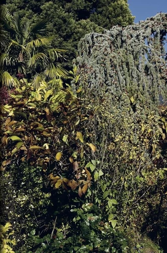Et puis, peut-être pas : peut-être qu'il n'y a rien d'autre derrière que de la banlieue suisse. Faure rend compte de cet "ordre des choses" par des hiérarchies visuelles minutieusement composées qui reflètent la volonté des propriétaires d'affirmer leur pouvoir de propriété, de façonner leur terrain, leur territoire personnel, comme ils l'entendent. Chaque chose a sa place. Ces plantes placées avec précision, scrupuleusement "formées" pour pousser de la bonne façon et intégrées au tissu urbain, incarnent la mentalité suisse, ainsi que les changements technologiques et culturels qui, depuis la fin des années 1950, ont transformé la Suisse en un vaste patchwork suburbain.