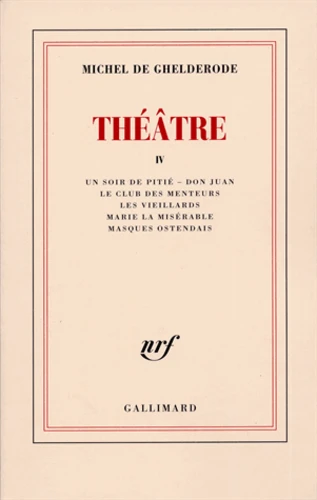 L'unité du théâtre de Michel de Ghelderode est dans son ton, à la fois truculent et prophétique, comique et désespéré, plein d'images sombres et violentes. Dans ce quatrième tome, il évoque notre temps, le XX ? siècle, aussi fortement que la Flandre médiévale ou renaissante. Le passé apparaît dans ce volume en plusieurs endroits : d'abord dans le grand "mystère" de Marie la misérable qui fut créé en 1952 sur le parvis de l'église de Woluwe-Saint-Lambert-lez-Bruxelles, et dont l'action, toute sainte et toute mystérieuse, se situe en 1302 ; on le voit aussi, mais sous forme de travesti de carnaval, dans Don Juan, drame sur la séduction, la beauté et leur dérision.
