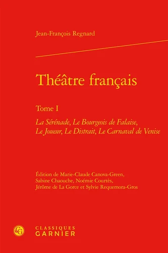 Ce volume regroupe les quatre premières comédies de Jean-François Regnard (La Sérénade, Le Bourgeois de Falaise, Le Joueur, Le Distrait) ainsi que son unique opéra, Le Carnaval de Venise. Considéré comme l'un des meilleurs auteurs comiques de son temps, Regnard fut systématiquement comparé à Molière.