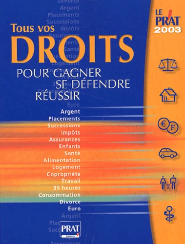 Des sujets d'actualité aussi importants que les nouveaux droits reconnus aux malades et le renforcement des droits du conjoint survivant en matière de succession y sont traités de manière à ce que vous soyez parfaitement informé des grandes réformes récemment intervenues. De nombreux modèles de lettres et de contrats-types, prêts à l'emploi et parfaitement fiables, vous permettent de mettre toutes les chances de votre côté et de convaincre le destinataire du bien-fondé de votre demande ou de votre réclamation. Tous vos droits pour gagner, se défendre, réussir dispose également d'un index très complet de plus de 1 500 entrées, de pages barèmes regroupant les chiffres essentiels, d'encadrés mettant l'accent sur les avantages ou les inconvénients d'une question... autant d'éléments qui en font un ouvrage de référence. Une édition parfaitement à jour comprenant les nouvelles mesures relatives à la famille avec la réforme de l'autorité parentale, le nouveau congé institué pour les pères ou la loi sur le nom de famille, mais aussi la très importante loi réformant les relations entre les banques et leurs clients ou les modifications apportées à la procédure du licenciement économique.