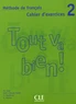 Cahier d'activités dans la collection Tout va bien ! , méthode de français langue étrangère (FLE) pour grands adolescents et adultes, niveau 2. Le cahier d'exercices est construit sur le modèle exact du livre de l'élève (il a les mêmes rubriques, excepté celle de Civilisation ) et il est accompagné d'un CD audio pour les activités de compréhension orale et autres. Le cahier permet de compléter ou renforcer certains aspects mais l'apprenant peut aussi l'utiliser comme et quand il veut.