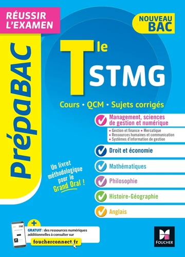 com pour retrouver tout le programme et s'entrainer en ligne> Retrouvez les toutes les matières générales, ainsi que les matières de spécialité : - Management et Sciences de gestion et numérique (+ options Gestion et Finance, Mercatique, RH Communication et SIG) / Droit et économie/ Grand oral - Mathématiques / Philosophie / Histoire-Géographie / AnglaisLa gamme d'ouvrages idéale pour bien se préparer, réussir son année décisive de Terminale et décrocher son bac avec mention !