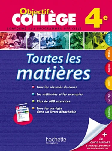 Les « tout-en-un » du collégien le plus complet, avec tous les cours et exercices pour réussir son année. Avec toutes les matières en un seul volume pour revoir l'intégralité du programme, Objectif Collège permet d'acquérir tous les savoirs et tous les savoir-faire indispensables pour réussir son année. L'ouvrage de soutien et d'entraînement pour la maison le plus complet du marché, avec, sur chaque notion fondamentale du programme : un résumé de cours détaillé, montrant clairement ce qu'il faut retenir (« Retiens l'essentiel »).