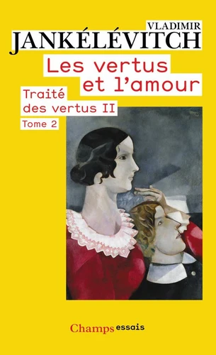 Le tome II du Traité des vertus, intitulé Les Vertus et l'Amour, est consacré à la description des " vertus ", depuis celle du commencement (le courage) jusqu'à celle de la terminaison (la charité), en passant par celles de la continuation et de la conservation (la fidélité, la justice). Il distingue en outre cieux plans tout à fait hétérogènes : celui des vertus de l'intervalle (fidélité, patience, modestie, amitié), que l'homme peut " posséder " et " garder ", mais qui, à peine acquises, tournent en mécanique vertueuse, radotage, complaisance pharisienne et hypocrisie ; et les vertus de pointe (humilité, générosité, sacrifice) que l'homme ne possède jamais, qu'il effleure seulement, d'une tangence impondérable, le temps d'une étincelle et d'une " apparition saisissante ". Vaut-il mieux être, au premier sens, un rentier de la vertu et un vertueux gredin, ou, au sens métempirique, le saint ou le héros d'un instant ? L'amour résout peut-être, dans une certaine mesure, cette alternative, qui est aussi celle du bonheur et de la joie.