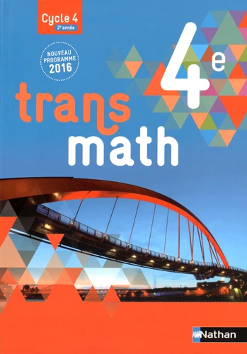 Le manuel de mathématiques Transmath 4e (2016) : un manuel totalement conforme à l'esprit et à la logique de cycle des nouveaux programmes. - Une collection totalement conforme à l'esprit et à la lettre des nouveaux programmes du cycle 4. - Toutes les spécificités des nouveaux programmes prises en compte : interdisciplinarité, enseignement "curriculaire", prise d'initiatives, algorithmique et programmation...