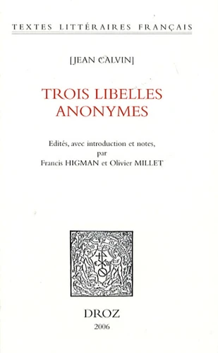 Les trois libelles rassemblés ici - le troisième, Response à un plaidoyer, était resté inconnu jusqu'à présent - doivent être attribués à Calvin. Ils manifestent son grand talent littéraire et sa maîtrise de la langue française. Journaliste pamphlétaire, réactif aux événements du moment, autant que théologien réformateur, Jean Calvin y déploie une verve improvisée, directement liée à l'actualité, mais qu'il marque des constantes de son style, immédiatement identifiable.