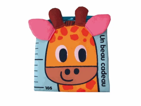 Une histoire et une toise girafe pour la chambre de bébé.