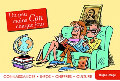 Avec cette éphéméride Un peu moins con chaque jour, apprenez au quotidien quelque chose de nouveau : culture générale, origine des expressions, chiffres à connaître, grands événements de ce monde, anecdotes originales... Ludique, amusante, mais aussi instructive, cette éphéméride vous permettra d'accroître vos connaissances sans effort et vous sauvera toujours la face lors de repas entre amis ou collègues de travail ! Pour ne jamais avoir l'air ridicule aux yeux des autres ! Pour ne jamais se sentir dépassé par les sujets abordés ! Pour ne jamais être traité de con, d'inculte, d'ignorant ! Pour soi-même ou à offrir ! Cette éphéméride se pose sur un bureau, sur une table...