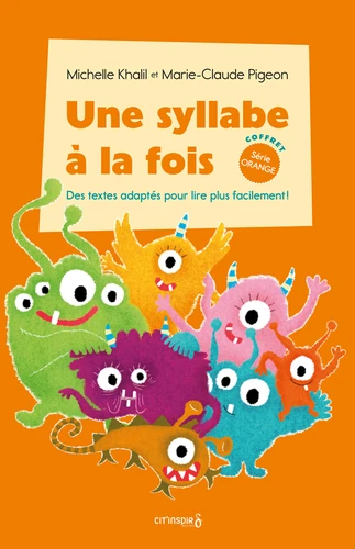 Chaque livret papier est un outil évolutif qui contient 2 fois le même texte : une version avec mise en évidence des syllabes orales et de certaines difficultés, et l'autre sans marques particulières. Le coffret de la série orange regroupe 10 livrets : Mini et les bébés ; Les bactéries de Mamie ; Gobi mérite-t-il un dessert ? ; Les super desserts de Rosie ; Mini a de l'appétit ; La grosse grippe de Mamie ; Le problème de Gobi ; Arthur déteste la lecture ; Mini est triste ; Plus grosse, ma crème glacée !