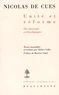 La plupart ne sont pas même intégrés à l'édition scientifique de Heidelberg (1932-2011). Cette anthologie d'une dizaine de textes comble cette lacune. Ils sont caractéristiques de la volonté de Nicolas de Cues de promouvoir la nécessaire réforme de l'Eglise, dans l'unité, à une époque marquée par la déchirure : grand schisme d'Occident, schisme de Trèves, conflit avec les Hussites, conflit entre l'assemblée conciliaire et le pape Eugène IV, nouveau schisme d'Occident avec l'élection de Félix V...