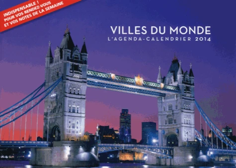 Pour celles et ceux qui aiment les voyages, retrouvez, semaine après semaine, une sélection des plus belles villes du monde. Posé sur votre bureau, l'agenda/calendrier 2014 vous permettra d'inscrire vos rendez-vous, prendre des notes, consulter la fête du jour ou les jours fériés, tout en admirant la photo de la semaine. D'un simple geste, il se replie et se glisse dans votre sac ou votre cartable pour vous suivre dans vos rendez-vous.