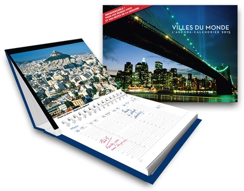 Utilisé dans ses déplacements, il permet de s’organiser grâce au calendrier hebdomadaire, simple d’utilisation. Ouvert sur le bureau, il donne à rêver sur de magnifiques photographies de ces villes où l’on aime trainer pour mieux se perdre ou se retrouver. La sélection des 53 visuels de cet agenda permet de retrouver chaque jour sa passion, son thème de prédilection. Un objet dont on ne peut plus se passer.