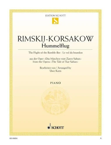 Le Vol du bourdon, extrait de l'opéra "Le Conte du tsar Saltan" d'après un texte de Pouchkine, est de loin la composition la plus connue de l'oeuvre de Rimski-Korsakov (1844-1906). Dans les transcriptions et les interprétations les plus diverses, le bourdonnement musical a fait son chemin dans les salles de concert et les stations de radio. Uwe Korn en présente deux nouveaux arrangements pour piano à deux et quatre mains.