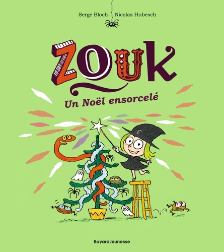 Zouk, la petite sorcière qui a du caractère, aime beaucoup Noël ! Elle aime décorer son sapin de toiles d'araignées, réveillonner avec Mamie Zak et Raymond (son horrible cochon chéri), leur préparer des surprises, manger du gâteau d'étoiles... Les fêtes avec Zouk, c'est vraiment magique !