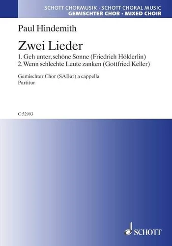 Zwei Lieder. Geh unter, schöne Sonne / Wenn schlechte Leute zanken. for three part mixed choir (SABar) a cappella. Partition de chœur.