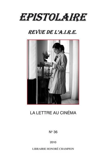 La lettre au cinéma "La lettre palimpseste : héritages textuels et visuels chez Arnaud Desplechin" "François Truffaut, l'homme qui aimait les lettres" . "Stephen Frears : Dangerous liaisons (1998)" "Adresseé "Fonctions poétiques et politiques de lettre de Ventura dans En avant jeunesse de pablo Costa" "Lettres d'un homme mort de Constantin Lapouchanski (1986) : l'épistolaire et le temps" "Le continuum épistolaire : à la lumière de deux films de Victor Erice" "The Civil War de Ken Burns 1989) : Insuffler la vie dans l'histoire " "Lettres d'Iwo Jima de Clint Eastwood : l'intime et l'évènementiel" "Les vampires de Louis Feuillade (1915-1916) et les lettres de l'épouvante" "La lettre dans le cinéma allemand expressionniste et Kammerspiel" "Lettres à un défunt" "Le facteur de la liberté : archive familiale de l'exil dans I dor India de Dandhya Suri (2005)" "Signé Godard" "La dérive des courriers solitaires : Unrequired Love de Chris Petit (2006)" "La lettre animée" "La lettre dans le cinéma d'animation" "Graver son chemin : lettres et messages d'enfants dans le cinéma d'Hayaho Miyazaki" Post scriptum "La lettre au cinéma ou la création d'espaces filmiques inédits" Perspectives épistolaires Philippe de Vita, "Dido Freire-Renoir, dans l'ombre de Jean Renoir épistolier" .