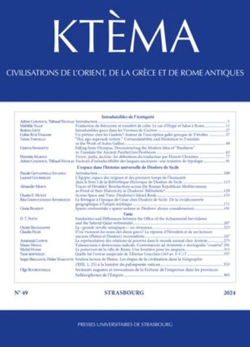 KTEMA est une revue annuelle de recherche consacrée à l'histoire, l'archéologie et la littérature de la Grèce, de Rome, de l'Egypte et du Proche-Orient antiques. Fondée en 1976 par Edmond Frézouls et Edmond Lévy, KTEMA jouit d'une solide réputation internationale et ses articles sont abondamment cités. Elle accueille des dossiers thématiques ainsi que des varia. Elle rassemble des articles originaux en français, en anglais, en italien et en allemand.