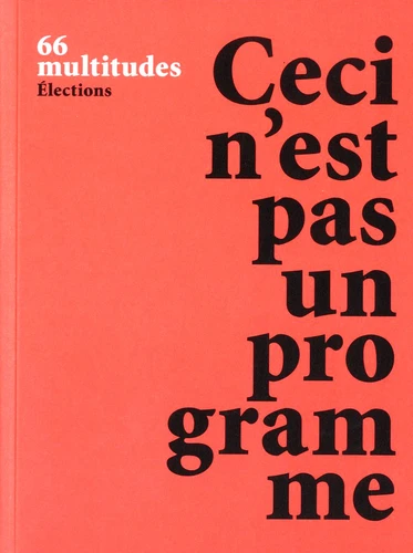 Multitudes balaie les thèmes qui lui tiennent à coeur dans la campagne présidentielle : -revenu universel financé par "une taxe pollen" sur les transactions financières pour permettre à tous d'avoir le temps de travailler à enrichir la société à leur manière - une globalisation à la hauteur de notre inséparation, de notre relation indéfectible avec les autres - une politique énoncée en propre dans sa diversité et non à la place d'un peuple fantasmé dans son unité - l'accélération de la construction de l'Europe fédérale - la nécessaire réforme de la médiasphère pour soutenir les énonciations originales - la création d'asiles de données personnelles autogérés par les ctoyens - le soutien aux lanceurs d'alertes et leur multiplication - l'investissement dans les villes, les quartiers, la multiplicité des lieux productifs petits et grands - l'éducation à l'écologie et le développement des pédagogies alternatives - un féminisme inventif sorti des ornières de la victimisation - l'attention des uns aux autres - la production des biens et de services non lucrative - Donner un statut juridique aux biens communs - Veiller à la biodiversité avec les ultramarins - La fin des prohibitions criminogènes - La vie avec les migrants et les migrations - La débureaucratisation - L'élargissement de la compétence démocratique - D'autres politiques sont possibles Sur chaque item, une argumentation en une page et demi, un encart plus provocateur et une proposition.