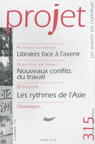 Libraires face à l'avenir : Petites ou grandes, les librairies de quartier ne font pas toujours partie du paysage urbain ! Quand elles existent, on apprécie ce commerce pas du tout comme les autres. L'arrivée du livre numérique les plombera-t-elle ou leur ouvrira-t-elle d'autres voies Nouveaux conflits du travail : La réapparition de conflits violents dans les entreprises touchées par la crise économique révèle à la fois l'individualisme parfois désespéré des travailleurs concernés et l'inadaptation d'organisations syndicales partagées entre la contestation et l'expertise nécessaire à la négociation. Les rythmes de l'Asie : Une Asie que nous imaginons conquérante, voire envahissante, au moins par sa réussite économique... Mais il faut découvrir les rythmes fondamentaux de trois sociétés dont le fonctionnement ne se laisse pas appréhender facilement. Mobilité et tensions internes à chaque pays n'empêchent pas la région de prendre sa place dans le monde, la première.