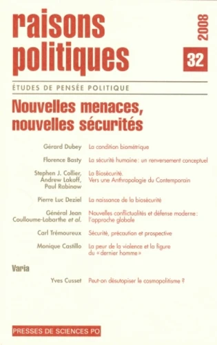 On constate depuis quelques années l'émergence de concepts politiques inédits : " sécurité globale ", " sécurité humaine ", " biosécurité ". tous ces termes tentent d'articuler une problématisation nouvelle de la sécurité qui soit à la hauteur de la configuration géopolitique apparue après la chute du mur de Berlin et la fin de la guerre froide. Dans un monde globalisé, dans un monde hanté par de nouvelles menaces (terrorisme, changements climatiques, catastrophes humanitaires, graves crises financières), les anciennes grilles de lecture du réalisme politique semblent décalées.