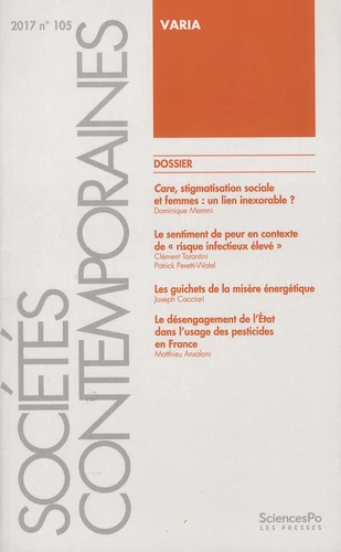 Investir dans le care peut être une stratégie payante en terme d'emploi, et la féminisation d'une profession peut se révéler, elle aussi, avantageuse. Cest ce que montre Dominique Memmi, qui décrit ces processus et leurs conditions de réussite à partir d'une enquête sur le métier d'infirmier en chambre mortuaire, prouvant que lien entre care, relégation sociale et genre n'est pas inexorable. Clément Tarantini et Patrick Peretti-Watel analysent le sentiment de peur chez les professionnels de santé d'un service de maladies infectieuses et tropicales, ainsi que la crainte de stigmatisation qui lui est intensément liée dans un tel contexte professionnel risqué.